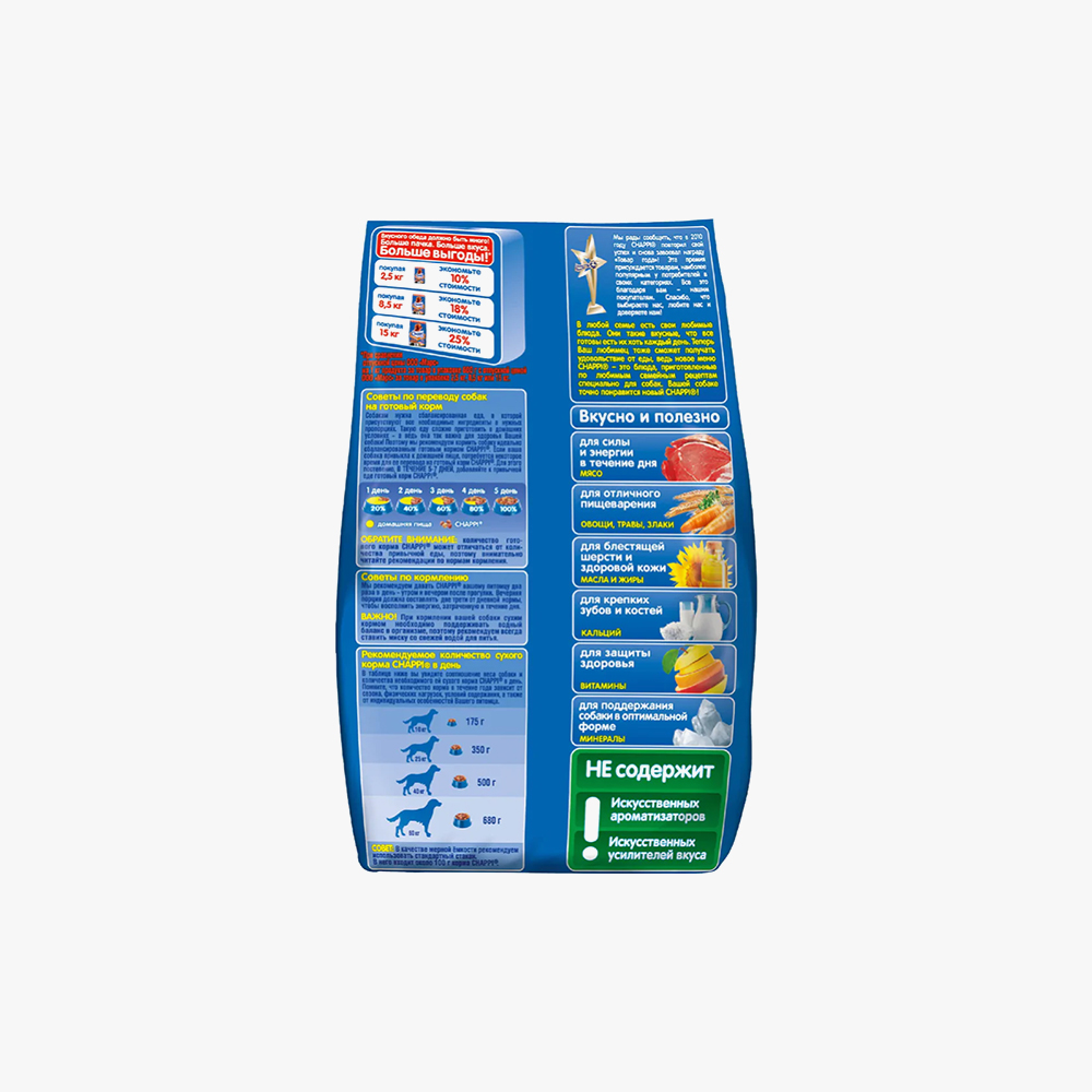 Chappi dry dog food, hearty meat lunch